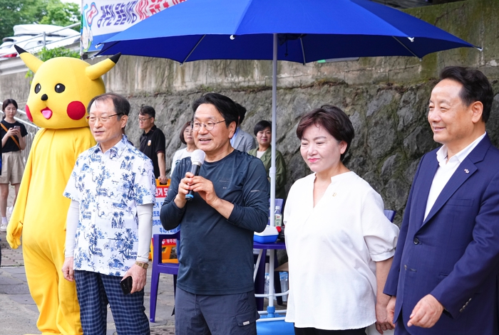 광주광역시는 13일 동구 용산동 동산타워 주변 광주천에서 ‘자연친화형 물놀이장’ 개장행사를 개최했다. 이날 개장행사에는 강기정 시장을 비롯해 박미정 광주시의회의원, 임택 동구청장, 김병수 광주환경공단 이사장, 시민 등이 참석했다.
