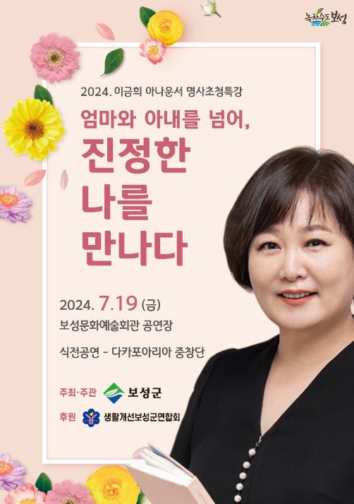 이번 강연회는 이금희 아나운서를 강사로 초청해 ‘엄마와 아내를 넘어, 진정한 나를 만나다!’라는 주제로 특강을 진행하며 별도의 예매 없이 선착순 무료입장할 수 있다.