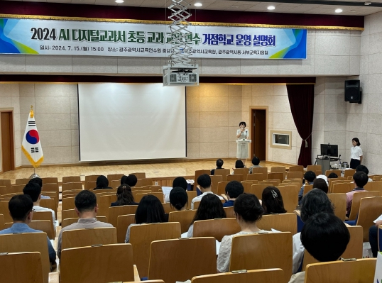 ![]() 광주동·서부교육지원청이 15일 광주교육연수원에서 디지털교과서 도입을 앞둔 거점학교 운영 설명회를 개최했다. |