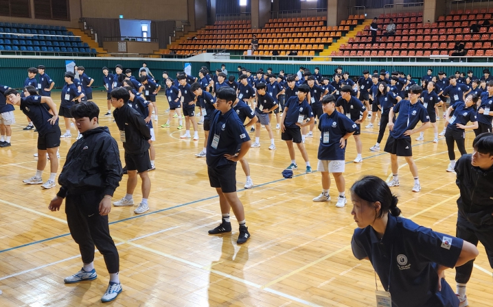 ![]() 2024 체육계열 대학입시 실기 모의 테스트에 참여한 학생이 준비운동을 하고 있다. |