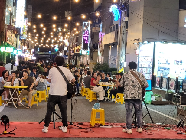 ‘2024 문화가 있는 날–구석구석 문화배달’ 사업 선정에 힘입어 강진읍을 음악이 흐르는 거리로 변화시키고자 진행되는 목요일 밤의 청춘버스킹 ‘목야청청’이 반환점을 넘어섰다.