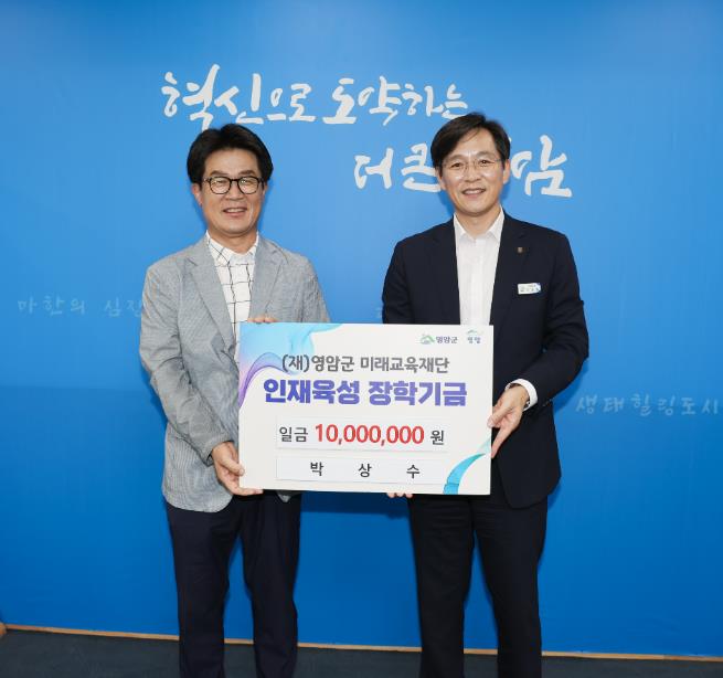 박상수 대표는 “영암군의 인재육성과 향토인재 발전, 지역 아이들이 꿈을 더 꿀 수 있게 장학금이 쓰이면 좋겠다”고 밝혔다. '