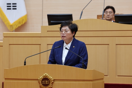 ![]() 장은영 의원이 16일 제383회 임시회 제1차 본회의에서 제안설명하고 있다. |