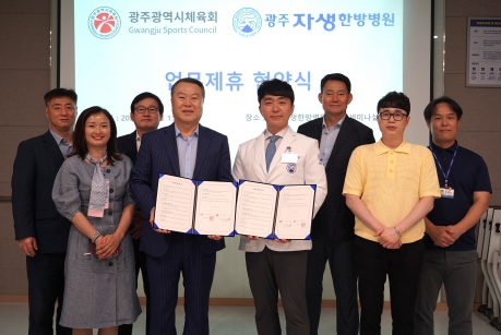 지난 15일 광주자생한방병원 10층 세미나실에서 진행된 협약식에는 전갑수 체육회장, 염승철 병원장, 송동호 행정실장을 비롯한 양 기관 임직원 10여명이 참석했다.