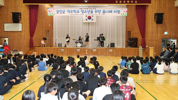 작년 칠량, 대구, 마량 지역에 이어 올해는 도암, 신전, 성전 초등학생과 중학생들을 대상으로 행사가 진행됐고, 식전 행사로 강진군청소년문화의집 밴드팀의 축하공연으로 흥을 돋웠다.