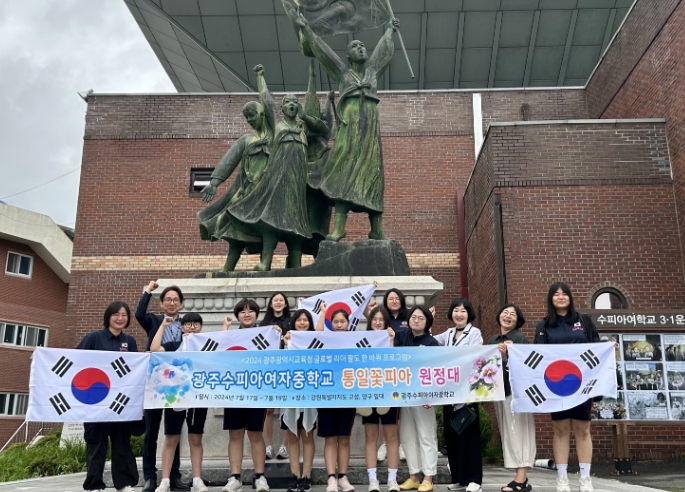 ![]() 광주수피아여자중학교 학생들이 17일 강원도 고성, 양구 등에서 진행되는 글로벌 리더 팔도 한바퀴에 나섰다. |