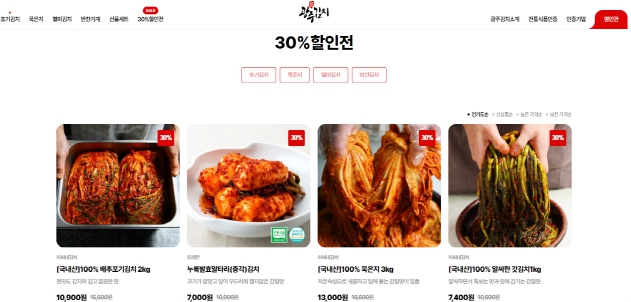 이 행사는 ▲배추 포기김치 1kg 7700원 ▲열무김치 1kg 6300원 ▲오이소박이 1kg 9100원 등 60여종으로 구성, 구매자들이 별미 김치를 저렴한 가격으로 맛볼 수 있다. 다만 판매 가격은 물가에 따라 변동될 수 있다.