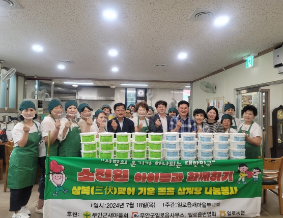 김진만 일로읍장은 “무더운 날씨에도 불구하고 보양식을 준비해 주신 새마을부녀회 회원들께 감사드린다”며 “어르신들이 삼계탕 드시고 건강하게 여름을 보내시기를 기원한다고”고 말했다