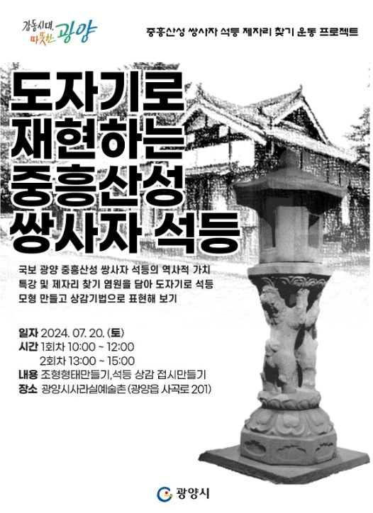 ‘도자기로 재현하는 쌍사자 석등’ 체험 프로그램은 국보 광양 중흥산성 쌍사자 석등 제자리 찾기'사업의 일환으로 기획됐다.