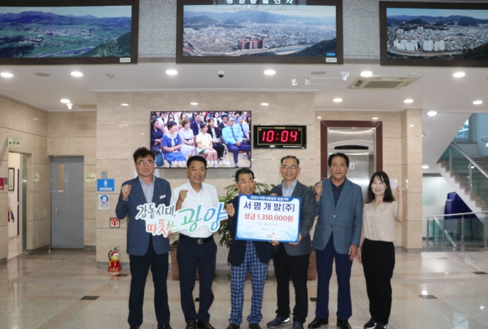 ![]() 서명개발(주), 광양읍에 후원금 135만원 기탁 |