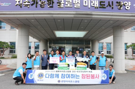 한편 광양라이온스클럽(회장 박문식)은 그동안 경로당 사랑의 봄 이불 전달, 중장년층 은둔형 위기가구 꾸러미 전달, 추석 맞이 방역공사 등 꾸준한 기탁과 봉사로 지역사회에 선한 영향력을 미치고 있다.