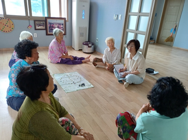 ![]() 김수진 작천면장이 마을회관을 방문해 어르신들과 대화를 나누고 있다. |