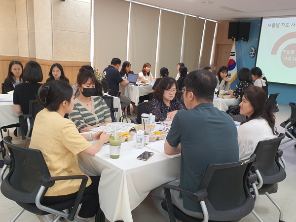 이 자리에는 도내 기초학력전담교사 41명과 문·수해력 컨설턴트 10명이 참여해, 1학기 동안 학습지원대상학생을 지도한 사례, 활용 교구․교재를 소개하고 경험을 나눴다.