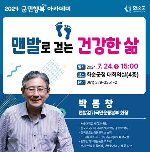 ![]() 화순군, 박동창 ‘맨발걷기 건강 전도사’ 초청 강연 개최 |
