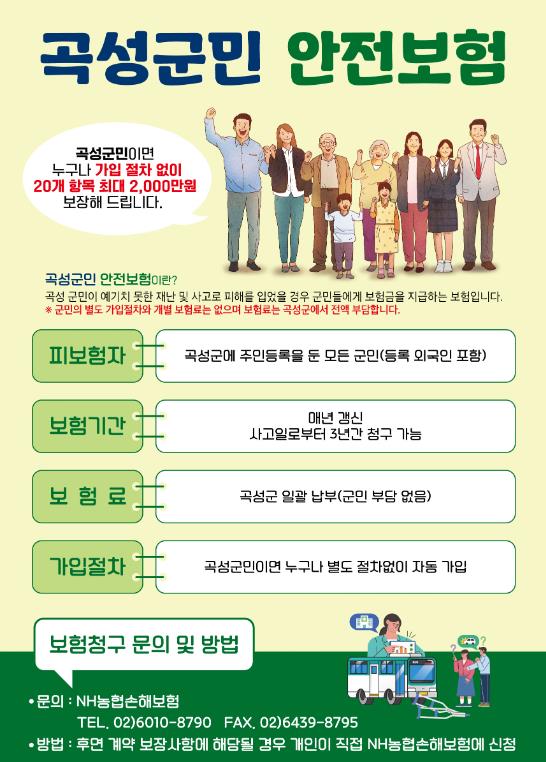![]() ‘곡성군민 안전보험’, 곡성군민이면 누구나 최대 2천만 원 보장 |