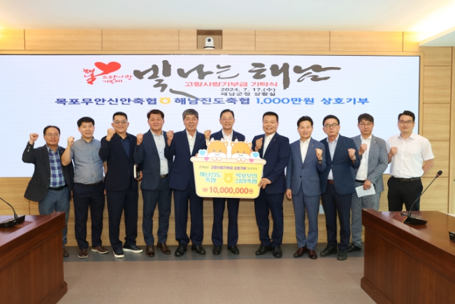 ![]() 해남진도축협-목포무안신안축협 1,000만원 고향사랑 상호기부 |