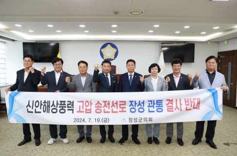 ![]() 장성군의회, ‘신안 해상풍력 고압 송전선로 장성 관통 반대’ 결의 |