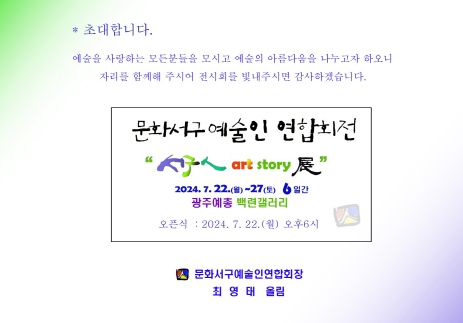 ![]() 광주광역시 서구, 문화서구예술인연합회 “서구 art story 展” |