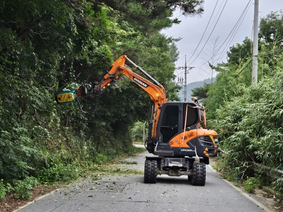 특히, 작업이 어려운 도로법면의 잡목 제거를 위해 굴삭기 부착용 제초기 등 중장비를 투입했으며, 도로변 적치물도 함께 정비함으로써 도로 이용객들의 편의를 높였다.
