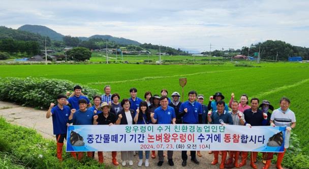 이에 앞서 장흥군은 7월 말까지 논 중간 물떼기 기간을 왕우렁이 집중 수거 기간으로 정하고 수거에 동참해 줄 것을 호소했다