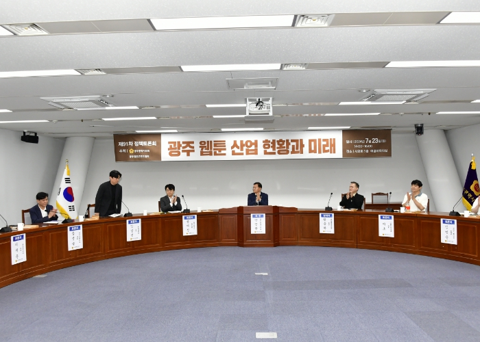 토론회는 안평환 행정자치위원장의 사회로 ▲황중환 광주웹툰콘텐츠협회 회장의 발제에 이어 ▲공성술 마나스튜디오 대표, ▲이호 스튜디오질풍 대표, ▲김범윤 상단스튜디오 부대표, ▲이재훈 공감미디어 대표, ▲김성진 호남대학교 교수, ▲정재성 북구 구의원이 토론자로 참여해 광주시 웹툰 산업 발전을 위한 중장기 과제 및 활성화 방안을 중심으로 다양한 의견을 제언했다.