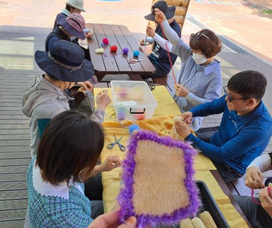 오전과 오후 프로그램 모두 1시간 동안 진행되며 오전에는 간단한 스트레칭으로 시작해 숲길을 걷고 곤충 관찰을 하며 오후에는 이끼 공과 천연수세미를 만들어보는 시간을 가진다.