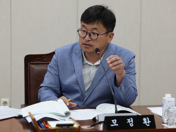 ![]() 지난 23일 모정환 의원이 제383회 임시회 기획조정실 소관 업무보고에서 질의를 하고 있다. |