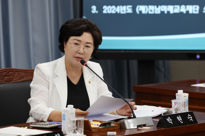 ![]() 박현숙 전남도의원이 지난 7월 23일 제383회 정례회 제1차 교육위원회 전라남도교육청 업무보고에서 질의를 하고 있다. |
