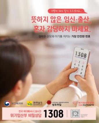전남도는 올해 4월부터 위기임산부 지역상담기관으로 목포 ‘성모의 집’을 지정하고 24시간 상담(1308·카카오채널 동시 운영)체제를 구축했다.