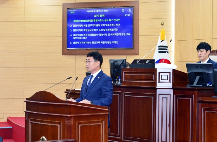 마지막으로 “국립농산물품질관리원은 '국민과 함께하는 세계 일류 농식품 관리기관'이라는 비전과 '농업인에게 안정적 소득 지원, 국민에게 안전한 농식품 공급'이라는 임무를 가지고 있으므로. 이러한 비전과 임무를 실현하기 위해서는 광양사무소 설치가 반드시 필요하다.”라고 촉구했다.