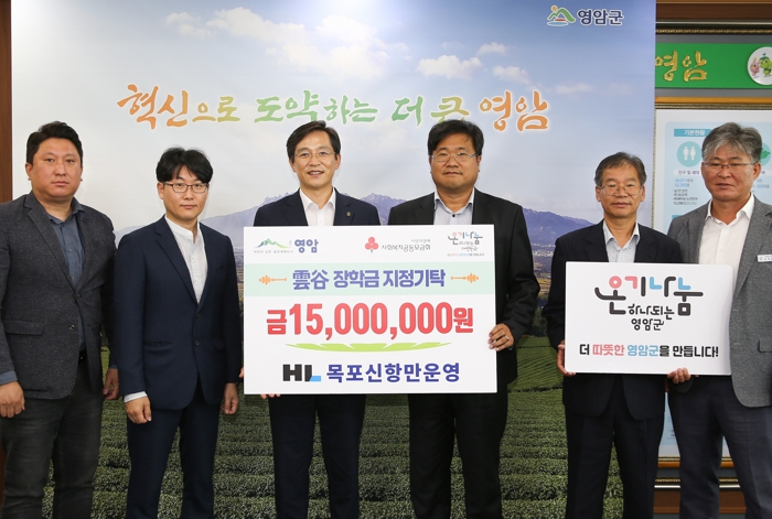 고(故) 정인영 HL그룹 창업 회장의 호를 딴 운곡(雲谷)장학금을 2019년부터 매년 기부해 오고 있는 목포신항만운영(주)는, 영암군 저소득층 자녀 지원과 지역 인재 육성을 위해 지금까지 9,000만원을 기부했다.