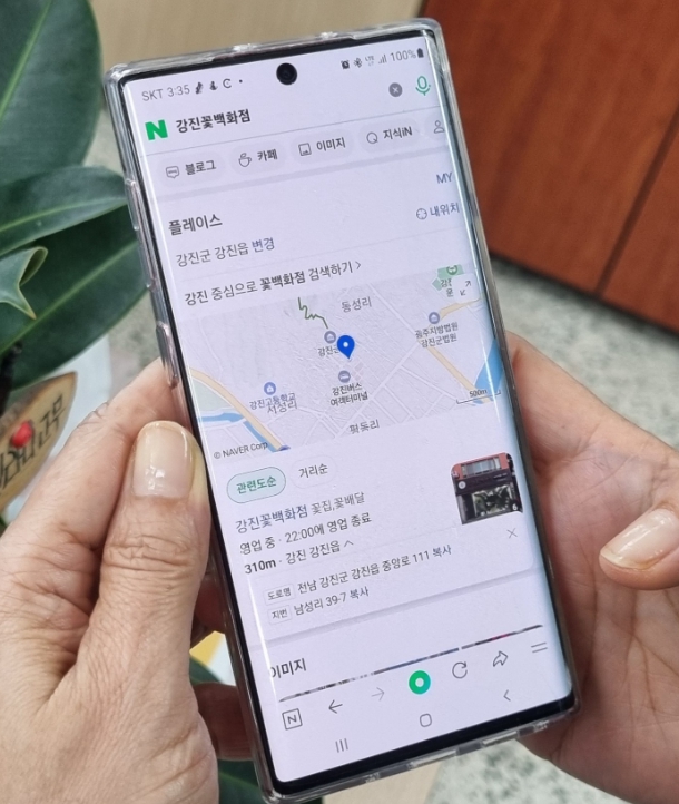 ![]() 소비자가 휴대폰으로 네이버 플레이스를 검색하고 있다. |