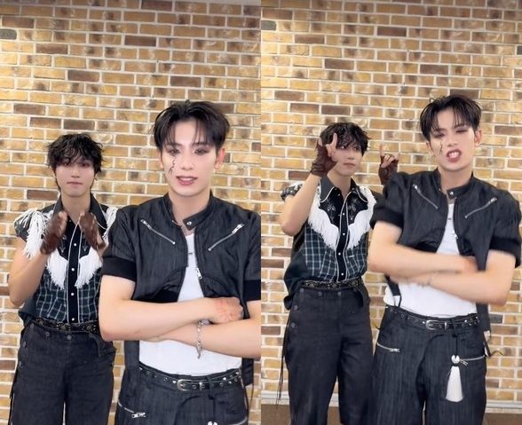 영상에는 건호와 한이 '도깨비' 포인트 안무를 펼치며 카리스마를 발산했다. 이어 한이 건호에게 장난을 치며 익살미를 보여줬고, 건호의 얼굴을 감싸며 남다른 애정을 드러냈다. 건호 또한 환한 미소를 지으며 훈훈한 선후배 케미를 자아내 팬들의 뜨거운 반응을 모았다.