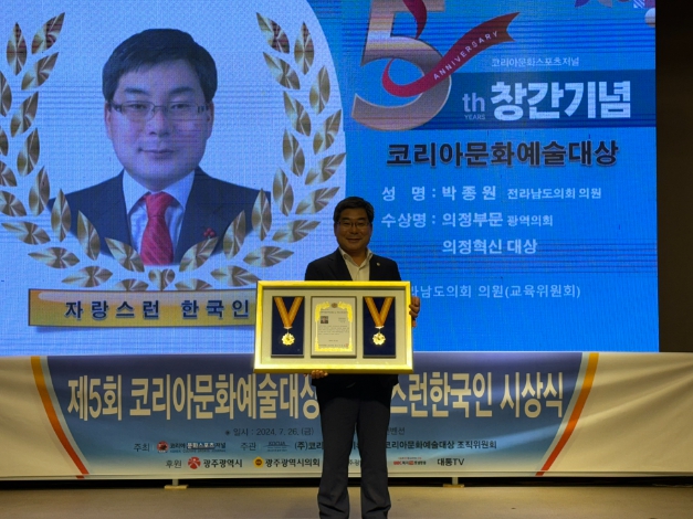 ![]() 박종원 전남도의원, 코리아문화예술대상 의정혁신 대상 |