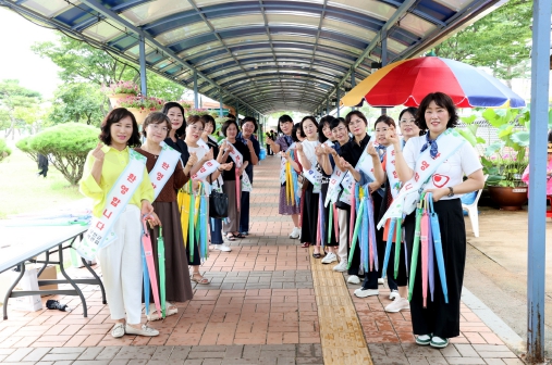 ![]() 무안연꽃축제장에서 홍보 캠페인을 진행하는 무안군 백련회 |