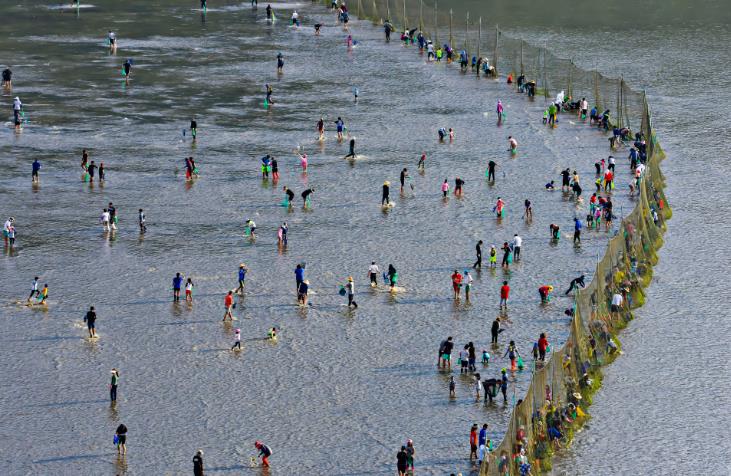 물이 빠진 갯벌 위 그물에는 주로 숭어, 농어, 돔 등의 다양한 어류가 걸리게 되며 이때 체험 관광객들이 갯벌 안으로 들어가 맨손으로 직접 잡는다.