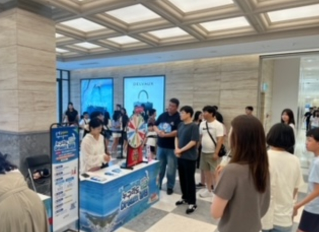 ![]() 신세계백화점에서 강진군청 임직원들이 반값 관광을 홍보하고 있다. |