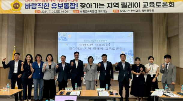 ![]() 전라남도의회, 찾아가는 전남교육 정책연구회 바람직한 유보통합! 찾아가는 지역 릴레이 교육토론회 개최 |