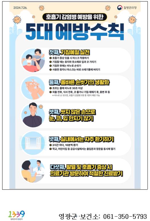![]() 영광군, 여름철 호흡기 감염병 비상에 철저한 대응 |