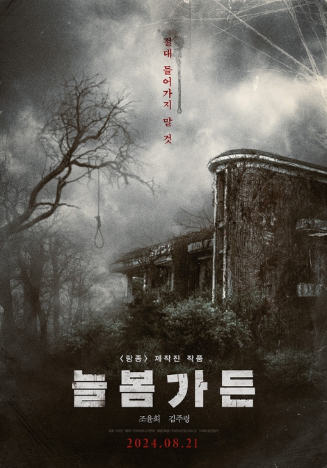이어서 이번에 공개된 2차 포스터에는 집 주위를 둘러싼 음산한 분위기의 안개들과 바싹 마른 나무들 그리고 거기에 의미심장한 밧줄까지 걸려져 있어 그 곳에서 일어난 사건이 무엇일지 호기심을 유발하는 가운데, “절대 들어가지 말 것”이라는 카피는 ‘늘봄가든’에 얽힌 섬뜩한 공포를 경고하며 그곳에서 일어난 기이한 사건의 정체를 궁금하게 만든다.