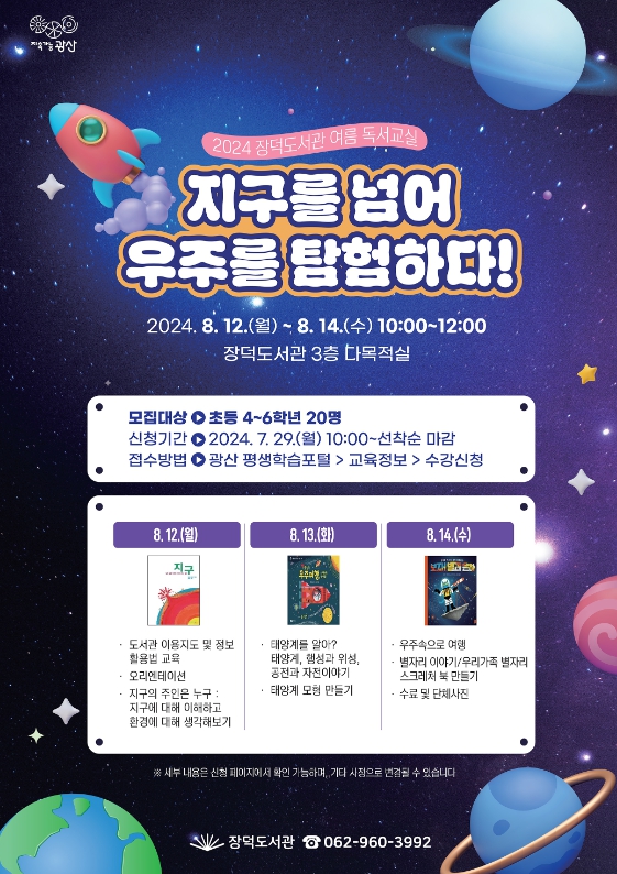 ![]() 광산구, 우주 세계 탐험…장덕도서관, 여름 독서 교실 운영 |