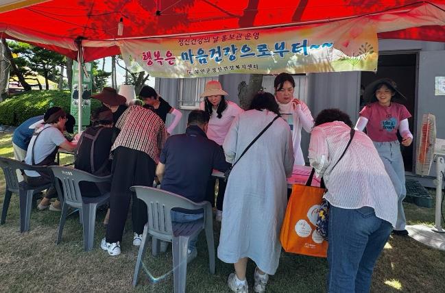 정신건강 및 자살예방사업 홍보관에서는 우울증 선별검사, 정신건강복지센터 사업을 홍보하고 군민들의 우울, 스트레스, 자살 등 정신질환에 대한 예방·치료에 대한 안내와 올바른 대처 방법을 공유하여 몸과 마음이 건강한 무안군을 만들기 위하여 진행했다.