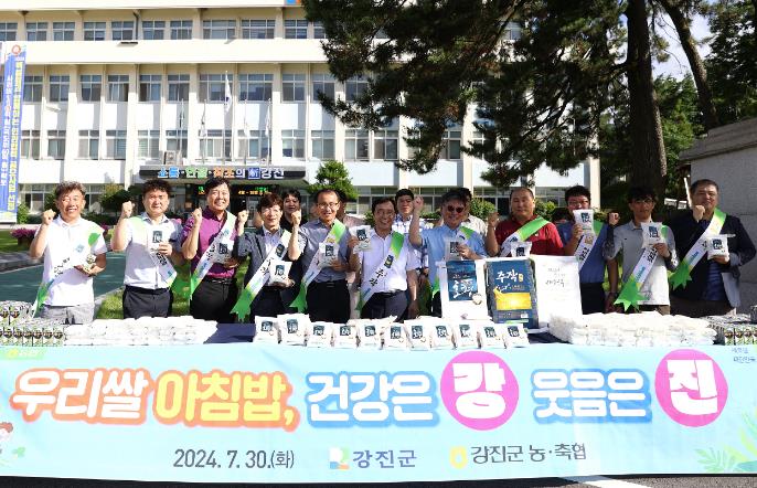 이번 캠페인에서는 군 농정실장, 농협중앙회 강진군지부장, 강진농협 조합장, 강진군농협통합RPC 대표 등이 참여하여 강진쌀로 만든 백설기 떡과 두유 각 1,000개를 준비해 출근하는 직원들에게 나눠줬으며, 행사 후 남은 떡과 음료는 군청 각 실과 소 및 지역 농협에 배부해, 건강을 위한 아침밥의 중요성과 강진쌀 소비 장려를 위한 메시지를 전달했다.