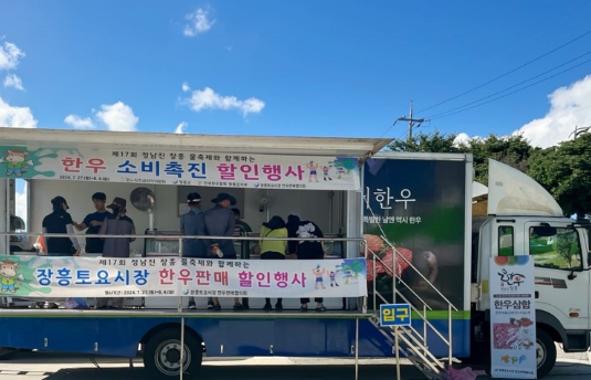 이동 판매차량을 활용한 한우 할인행사는 7월 27일부터 8월 4일까지 물축제가 열리고 있는 탐진강변에서 진행된다.