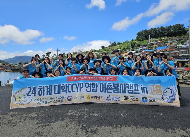 고흥군은 지난 7월 18일부터 20일까지 한국해비타트 대학동아리 연합(CCYP, Campus Chapters · Youth Program)과 함께 ‘2024 하계 어촌봉사캠프’를 성황리에 진행했다고 밝혔다.