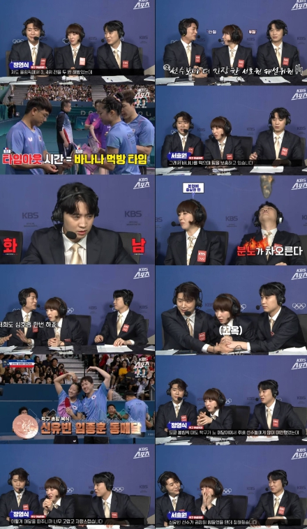 마침내 승리가 확정되자, 서효원 위원은 울컥하며 “제가 선배로서 메달을 못 따줬는데...신유빈 선수 너무 힘들었을 텐데 정말 잘해줬다”고 결국 눈물을 터뜨렸다. 정영식 위원 역시 “2016년 리우올림픽 때 저와 서효원 위원이 같이 나갔었고, 도쿄올림픽 때 탁구가 노메달이어서 후배들한테 너무 미안했는데 이렇게 메달을 따 주니까 고맙고 자랑스럽다”며 12년 만에 나온 한국 탁구의 올림픽 메달에 함께 감격해 시청자들까지 감동시켰다.
