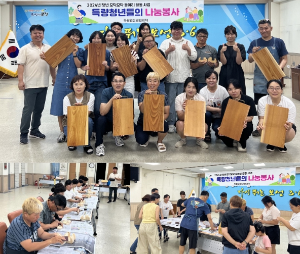‘모닥모닥 동아리 활동 지원 사업’은 청년들에게 문화 활동의 기회를 부여하고, 청년 커뮤니티 활성화를 지원하는 사업으로 득량면 청년협의체는 이번 활동을 통해 만든 50여 개 목재 도마를 관내 홀로 계신 어르신 가구에 전달할 예정이다.