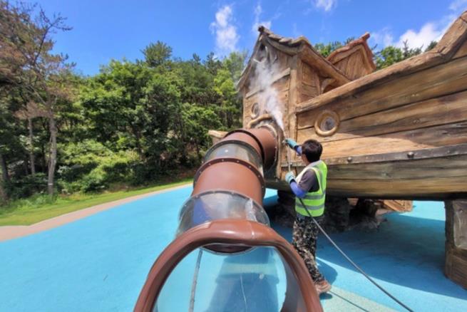 동 지역 도시공원 27개소와 광양읍권 도시공원 27개소, 총 54개소의 어린이공원을 대상으로 소독 작업을 진행했으며 모든 놀이시설에 대한 세균 검사 또한 어제(30일) 마무리했다.