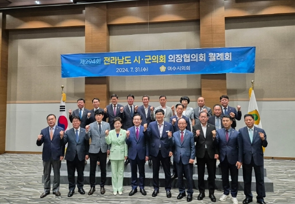 ![]() 제294회 전라남도시군의회의장협의회 월례회의 기념 촬영 |