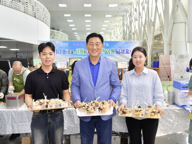 군에 따르면 31일 장성군청 1층에서 사단법인 자비신행회 팥빙수 나눔 행사가 열렸다. 북하면 행정복지센터와 무량선원이 연계한 이번 나눔은 더위에 지친 장성군 공직자들을 위로하고 힘을 북돋워주기 위해 마련됐다.